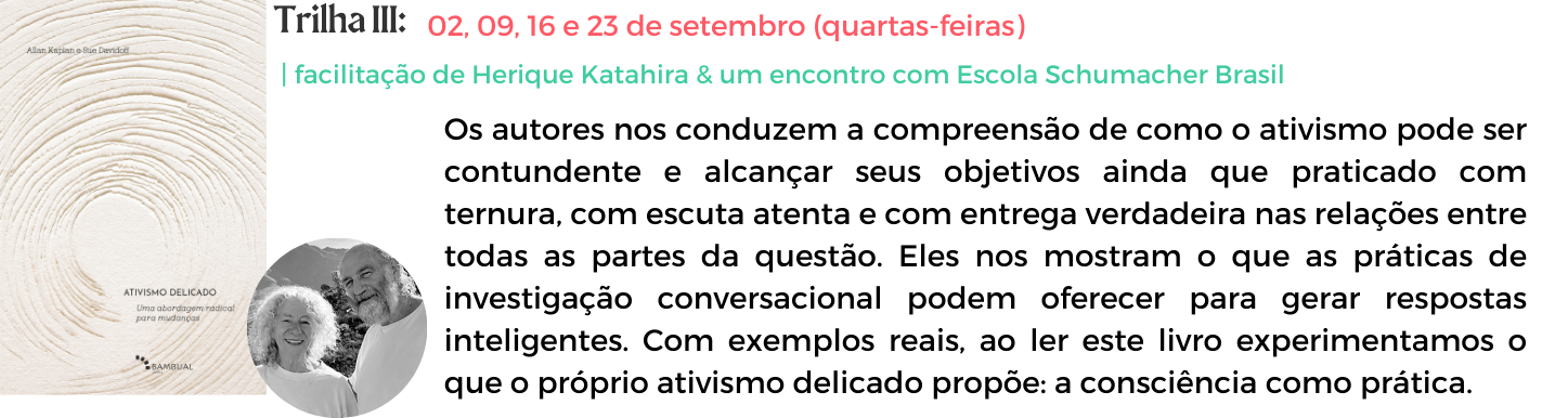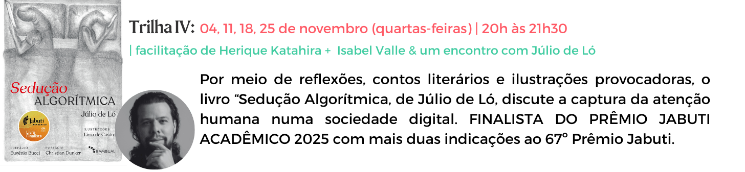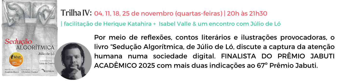 Um espaço de encontros, trocas e práticas para quem quer aprofundar os temas que atravessam nossos tempos.